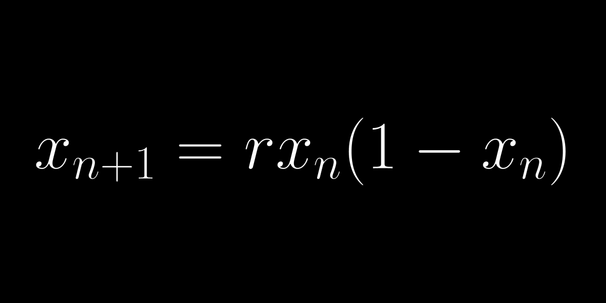 This simple formula captures chaos. The logistic map is a demographic model predicting the current/max population each year starting from an initial value $x_0$ ($ 0 < x_0 < 1 $). Even the slightest change in $x_0$ will become large over time if $ r > 3.57$.