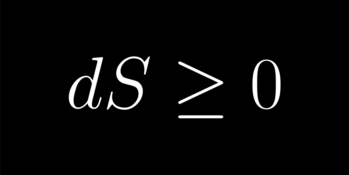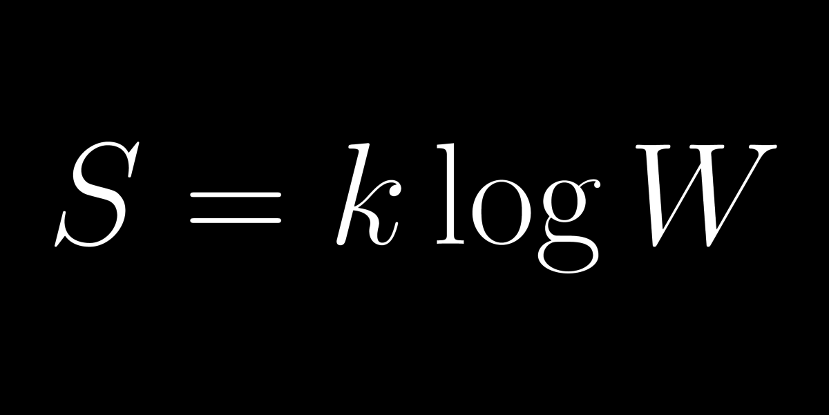 Entropy (S) is a measure of disorder in a system. The entropy of the universe can never decrease with time, that is why we can tell past and future apart (arrow of time). The formula was found by Boltzmann (it's engraved in his tombstone).