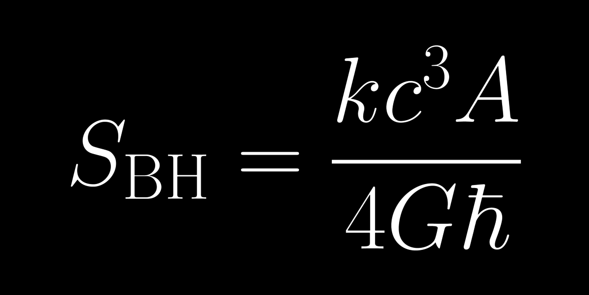 The Bekenstein-Hawking formula expresses the entropy (S) of a black hole in terms of the size (A) of its event horizon. It's a wonderful thing connecting quantities from thermodynamics (k), gravitation (G) and quantum mechanics (ħ).