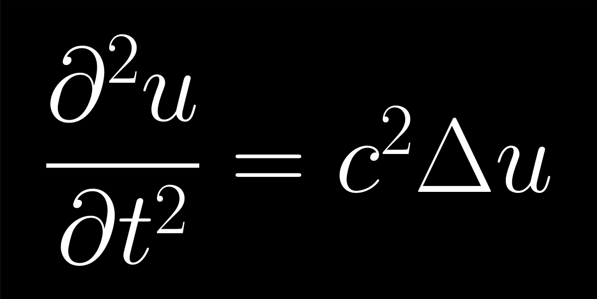 A plucked guitar string, a vibrating drumhead, the WiFi signal and the propagation of light itself is described by this equation, the wave equation, in which the parameter c is the propagation speed of the wave.